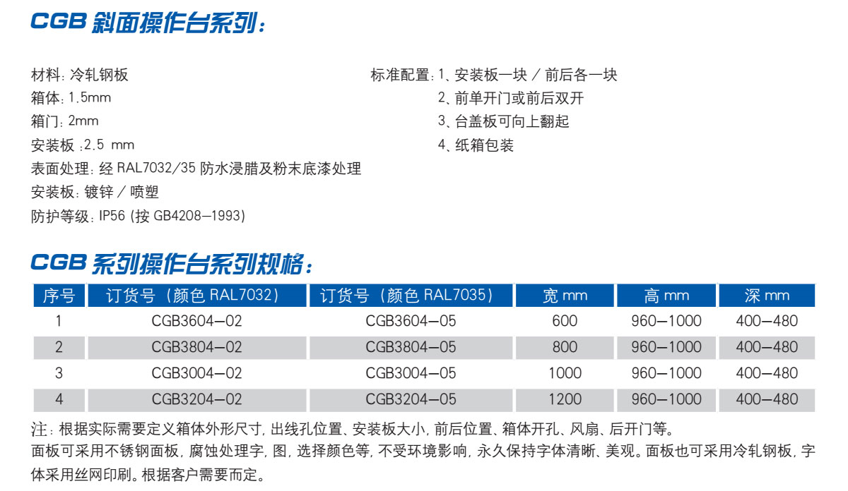 CGB斜面操作臺(tái)系列:材料:冷軋鋼板