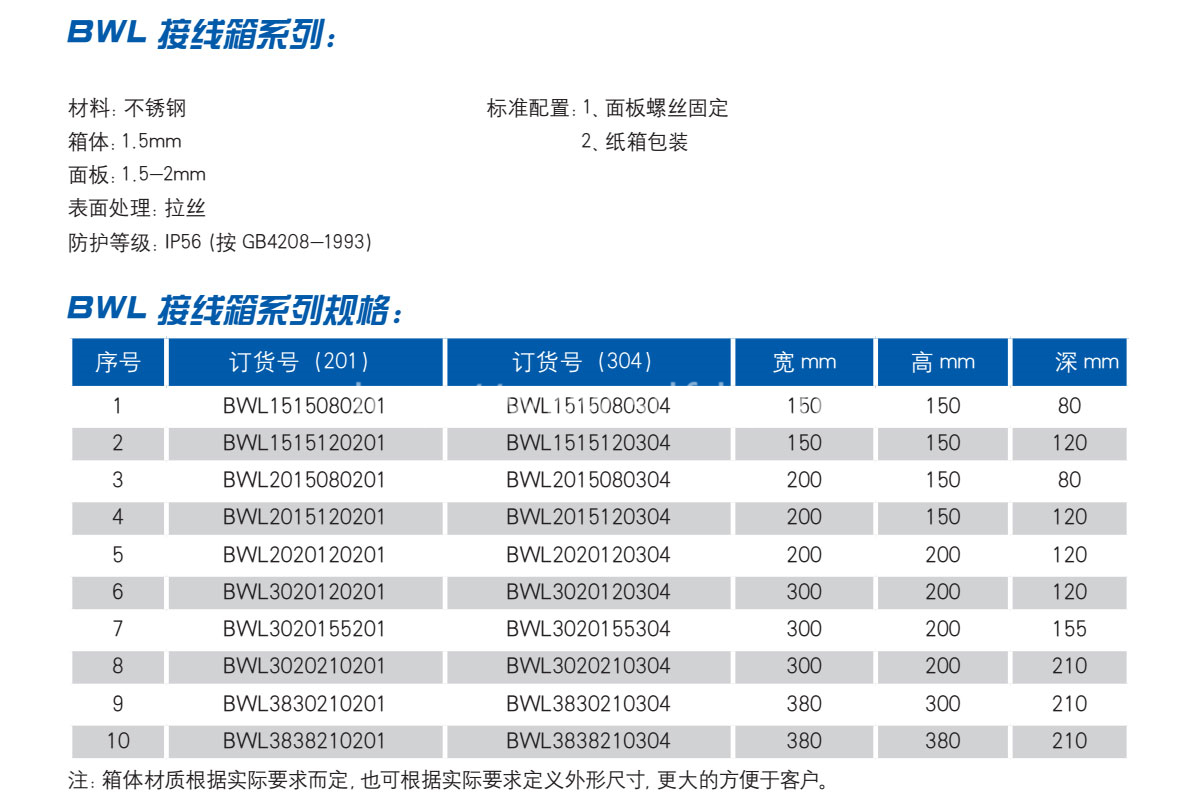 BWL接線箱系列